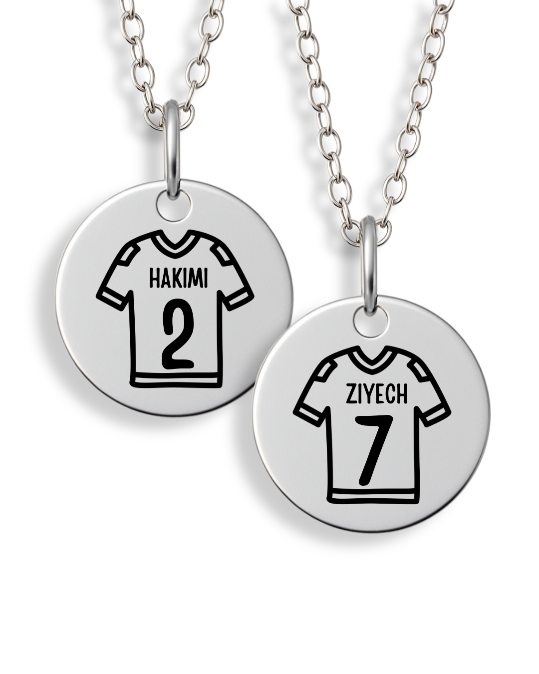 Personnalisez votre médaillon avec un maillot de joueur et votre prénom et portez votre trace, votre histoire, votre équipe, votre pays.